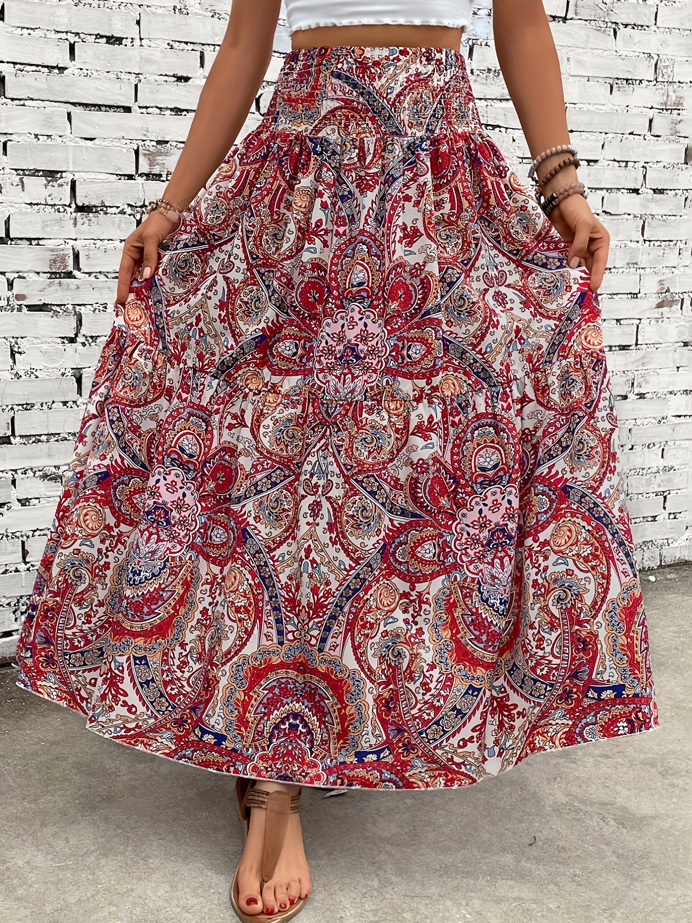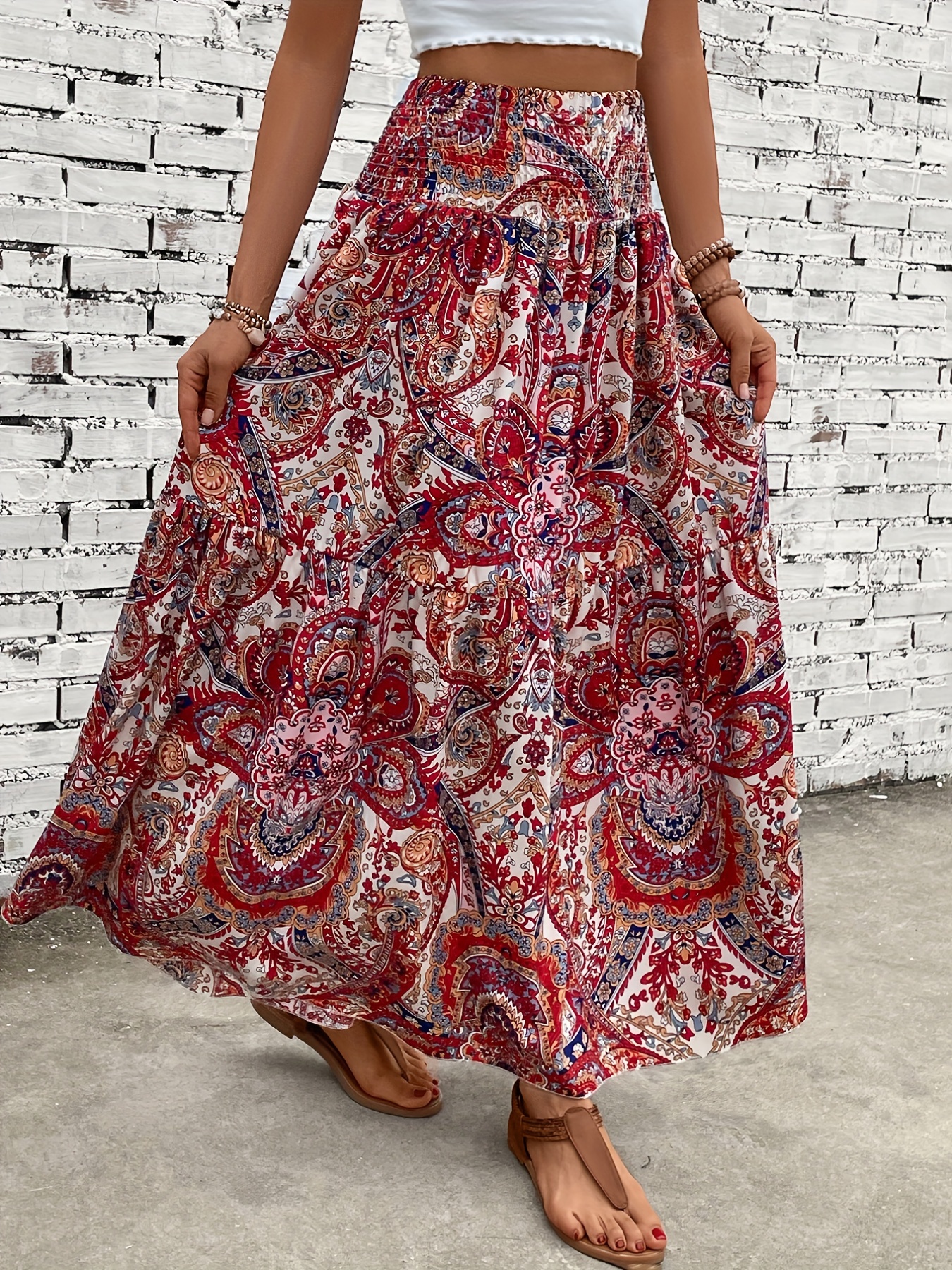 Paisley Print Shirred Waist Skirt, Casual Beach Wear Skirt For Spring & Summer, Women's Clothing